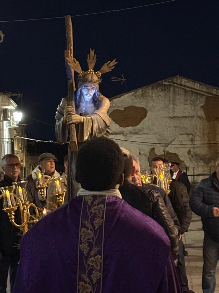 El Viernes Santo, los fieles se reunieron en un ambiente de silencio y oración para la celebración de la Pasión del Señor. Posteriormente, tuvo lugar la procesión, en la que la comunidad acompañó con devoción la imagen de Cristo en su camino de entrega, manifestando públicamente la fe y el recogimiento propios de este día.