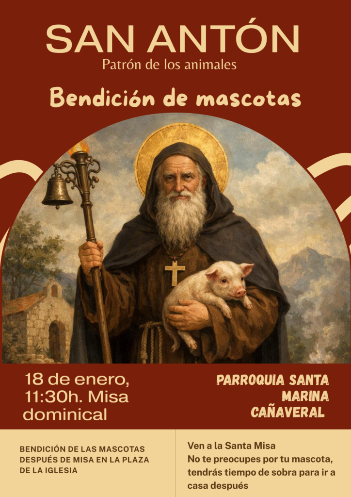 San Antón nos recuerda el cuidado amoroso de la creación y la responsabilidad que tenemos hacia los animales, que también forman parte del don de Dios. Por eso, invitamos a todos los vecinos y familias a participar en esta celebración tan especial.