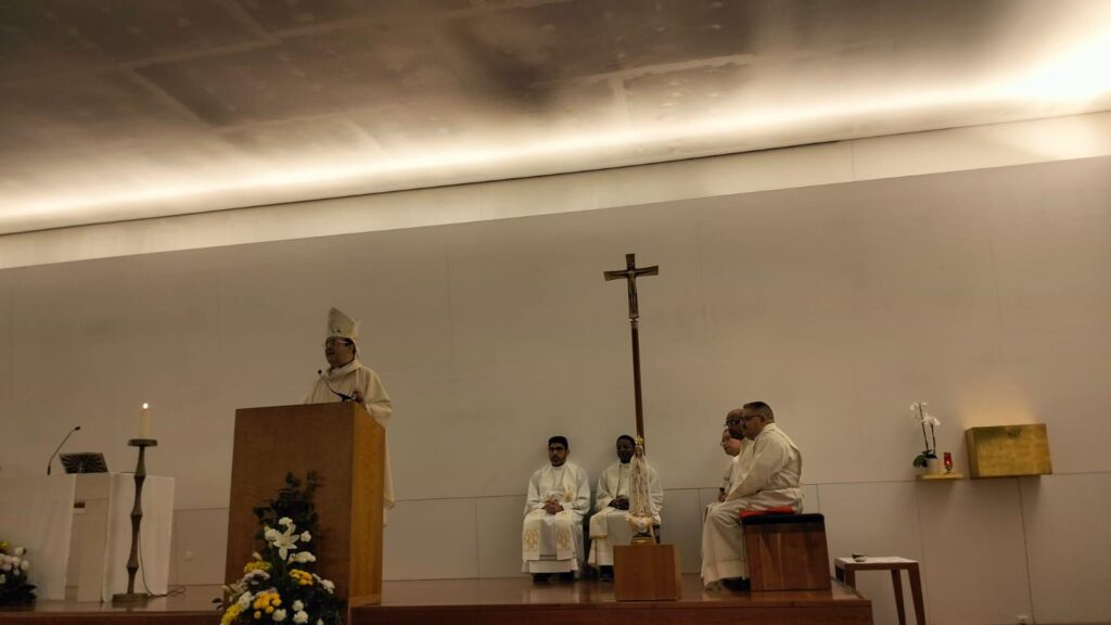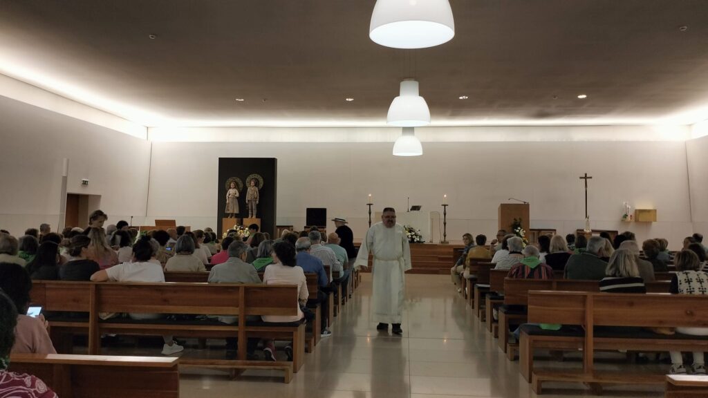 Uno de los momentos más profundos del día fue la celebración de la Eucaristía en la Capilla de la Muerte de Jesús, en la Basílica de la Santísima Trinidad, presidida por nuestro obispo, Don Jesús. En su homilía, compartió con emoción que era la primera vez que visitaba Fátima, agradeciendo al Señor y a la Virgen la oportunidad de hacerlo acompañado de su comunidad diocesana. Nos invitó a vivir con una fe confiada y sencilla, como la de los pastorcillos, y a acoger la gracia jubilar como un “signo de renovación interior y comunión eclesial”. Asimismo, destacó de manera especial la figura de la Virgen María como intercesora, recordando que “ella siempre nos conduce a su Hijo y nos enseña a mirar el mundo con los ojos de la fe y la misericordia”.