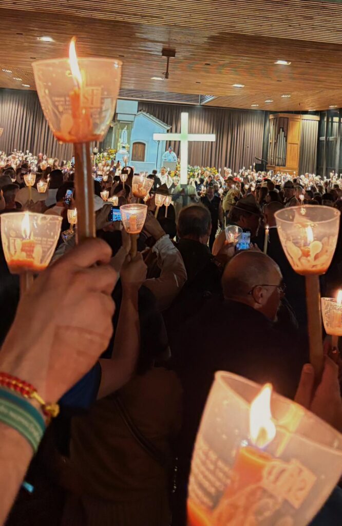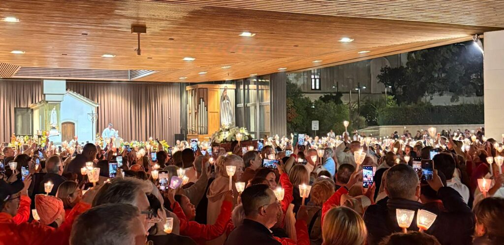 El broche de oro de la jornada fue el rezo del Santo Rosario en la Capilla de las Apariciones, seguido de la procesión de las antorchas, un momento de profunda emoción y oración compartida bajo la mirada de la Virgen.